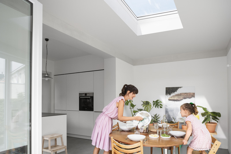 Do wielu pomieszczeń w budynkach z płaskim dachem dociera bardzo mało światła dziennego. Dotyczy to zarówno kuchni, gabinetów, jak i pokojów dziennych. Okna do płaskiego dachu VELUX potrafią zupełnie odmienić pomieszczenie, a rezultaty w postaci ilości światła dziennego oraz świeżego powietrza jest zdumiewający.